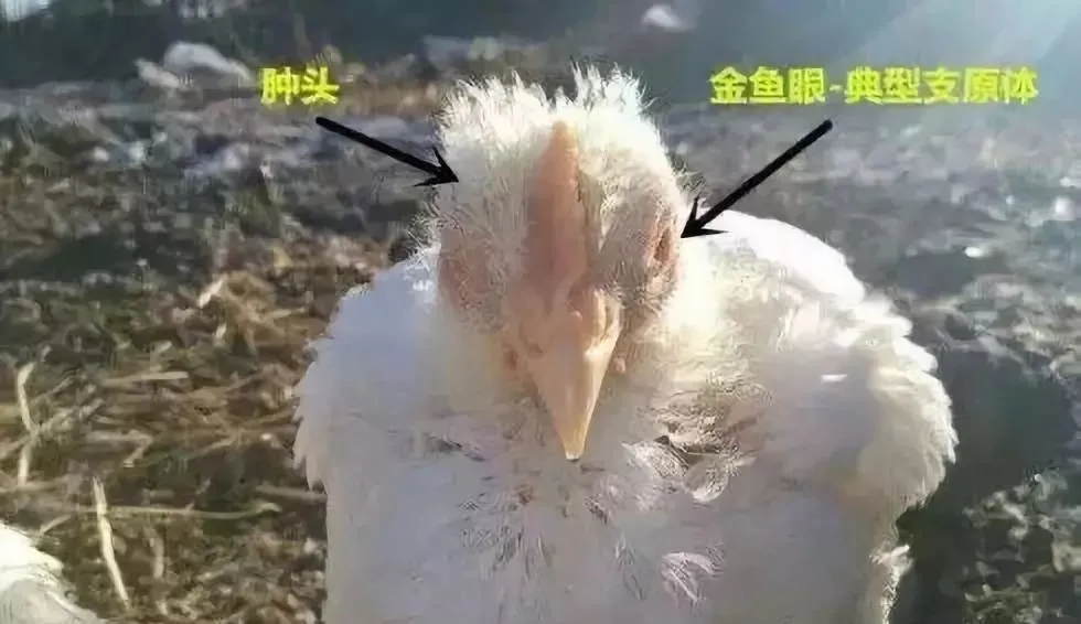 患雞群有些有腫頭腫臉、流鼻涕、眼結膜紅,群內呼嚕份額多而咳嗽少。